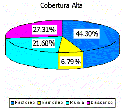 El tiempo dedicado a rumia y descanso se realiza principalmente en las horas de la mañana y es sustancialmente mayor en potreros con tratamiento de bajos rangos de cobertura arbórea en relación a potreros con alta cobertura arbórea.