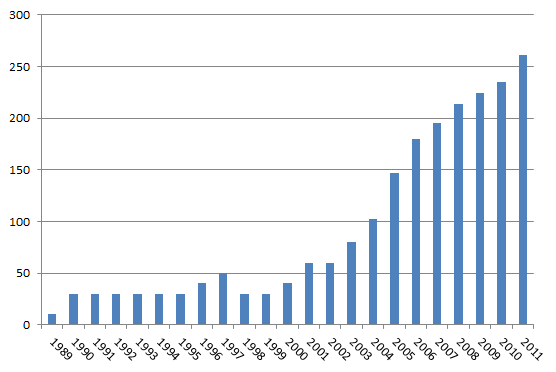 LRRD published 261 papers in 2011. The number of papers published since the launch of LRRD in 1989 up to the end of 2011 is now 2194. During the last 5 years the annual increase in numbers of papers published has averaged close to 15% (Figure 3).