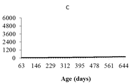 The maternal additive genetic variance were close to zero for the whole evaluated period (Figure 2). These results might be a consequence of the small number of offspring per dam, 1.19. In contrast, Nobre et al (2003) reported maternal additive genetic variances increasing from birth to adulthood. Dias et al (2006) observed that maternal additive genetic variance estimates increased up to 200 days old, decreased between 200 and 580 days and new increased after 580 days old. This trend reported by Dias et al (2006) has also been reported for different breeds (Mota et al 2013a).