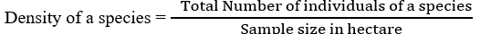 Species density was determined by counting the number of individuals in the sample plots and converting the count into hectare basis.