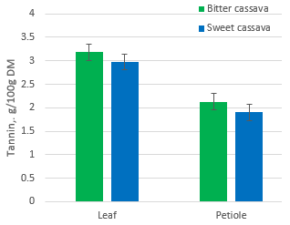 Condensed tannin in petiole and leaf from foliage of sweet and bitter varieties of cassava |