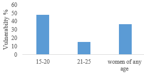 | Figure 9. Age group & female workers' vulnerability to VAW (in %) |
