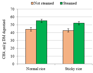 | Figure 7. Effect of steaming sticky rice or normal rice on methane production per unit substrate solubilized. |