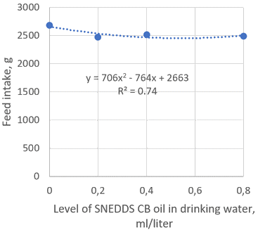 | Figure 1. Response curve for feed intake according to the level of SNEDDS Cinnamon bark (CB) oil in the drinking water |