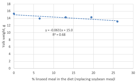 There were two reports of decreased yolk weight from feeding linseed to laying hens (Bean and Leeson 2003; Antruejo et al 2011) which agreed with our findings although the reasons for this are unknown.