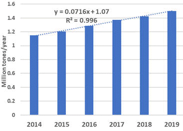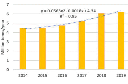 | Figure 2. Importation of maize in Colombia (million tonnes/year) /USDA 2020) |