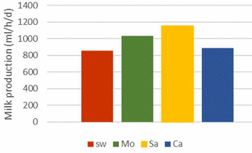 Milk production, ml/h/d |