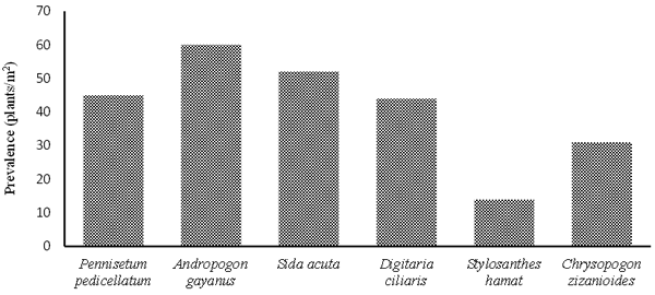 Five sheep (15±2.5 kg initial weight ± SD) were randomly selected from the general flock of each selected farmer for the growth performance experiment. Animals receiving the SML were kept intensively and fed their diet (SML; Table 2) in the morning (8:00 AM) and afternoon (3:00 PM) whereas those on the Control were sent out for grazing on native pasture (Photo 1) every morning at about 8:00 AM and returned to their pens at about 5:30 PM in the evening. The native pasture consisted mainly of Adropogon gayanus, Sida acuta, Pennisetum pedicellatum and sparse species of Stylosanthes hamat (Figure 1). Rice husks were used as bedding material in each pen. The ingredient composition of the diets is shown in Table 2. Prior to the start of the growth performance experiment, sheep on SML were adapted to their experimental cages for 14 days. Prior to the commencement of the experiment, all the sheep were treated with ivermectin injection to control internal and external parasites Other husbandry practices for management of sheep in both SML and Control households have been previously described by Komarek et al (2021).