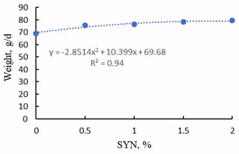 Nutmeg flesh extract was prepared as per method described by Sapsuha et al. (2021), in which 1 kg of nutmeg flesh was macerated by immersing it in a 4 L of 96% ethanol solution for 3 x 24 hours. Stirring was done twice during the maceration process (in the morning and evening). The immersion results in the form of filtrate were then filtered and evaporated using a rotary evaporator to produce nutmeg flesh extract. Symbiotic preparation was performed by mixing 20 ml/100 ml distilled water extract with 10 ml Lactobacillus plantarum (bacterial concentration 1 x 109 cfu/ml). Symbiotics were stored in the refrigerator until use.