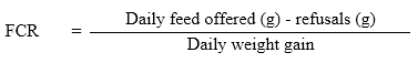 Growth performance: All quails were weighted weekly in the morning and then daily weight gain (ADG) was calculated. Daily feed refusals were weighted and daily feed intake was calculated accordingly, and feed conversion ratio (FCR) was defined as following:
