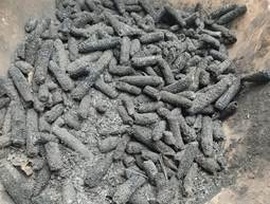 Foto 2. Enfriamiento de la tusa de maíz carbonizada |