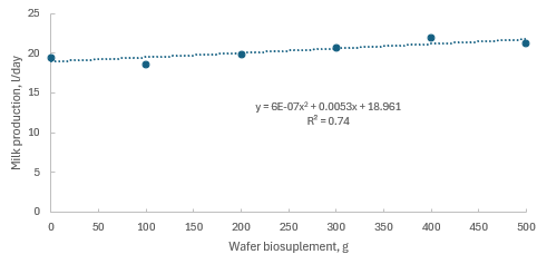 | Figure 3. Graph illustrating the effect of biosupplement wafer feeding on milk production (l/day) |