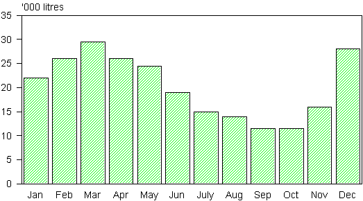 Figure 4 also shows that more milk was used for the production of naturally fermented milk. This was most marked during the flush season because there were limited cooling facilities for raw milk and inadequate equipment for the production of larger quantities of cultured milk at the centre. This assertion is supported by the fact that the two types of fermented milks were sold at the same price, although it was apparent that input costs for the cultured milk were higher. The centre therefore resorted to producing more naturally fermented milk as its production is less complicated and requires minimal labour.