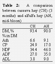 relatively low. A comparison between cassava hay (CH) and alfalfa hay (AH) is presented in